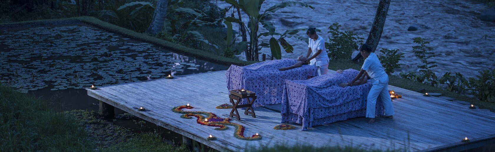 Недавно обновленный Sacred River Spa включает 7 приватных спа-вилл, названных в честь священных балийских стихий, которые способствуют целостному оздоровлению и детоксикации. Также открыты зоны релаксации и сауна. Ритуалы основаны на балийской концепции Niskala - энергетических потоках, которые влияют на тело и дух. Частью центра является павильон йоги Dharma Satya, сауна с инфракрасной и шведской системой, а также студия звукового исцеления с поющими кварцевыми чашами, настроенными на природную частоту 432 Гц.