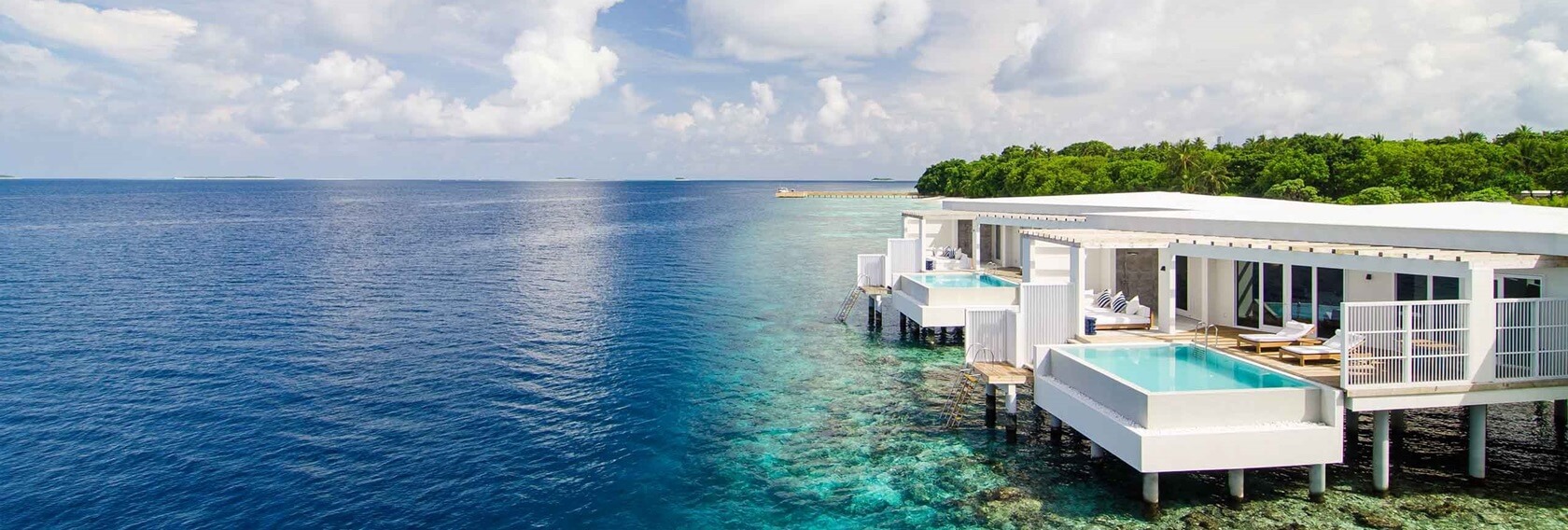 Курорт раскинулся сразу на трех соединенных мостиками островах. Здесь представлены как пляжные и водные виллы, а также уникальные резиденции Reef Villas, сочетающие выход к океану и в тропический сад.